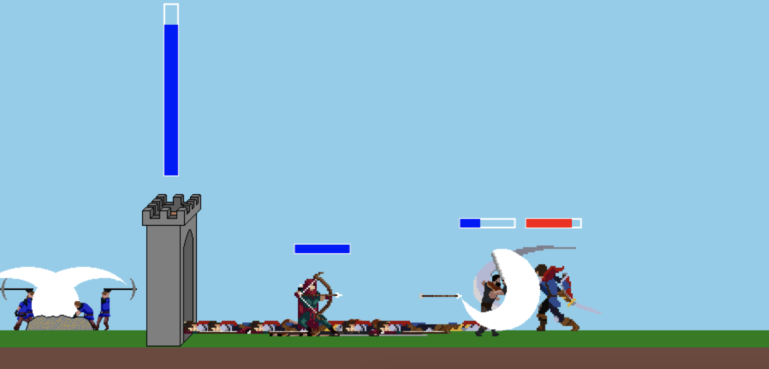 Side view strategy game (one could call it Age of War clone). Playable against AI, with 4 different difficulty levels.